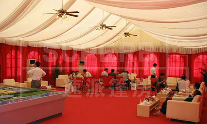 我司嚴格執(zhí)行ISO9001的質(zhì)量管理體系,確保不良產(chǎn)品的最小化及客戶滿意度的最大化。我們的的主要產(chǎn)品包括可移動的模塊化鋁合金支架篷房,有不同風格的篷房及裝飾可供選擇,篷房跨度從3米到60米。此外,還包括錐頂篷房和吊頂篷房,以及篷房配件,如照明燈具、地板、空調(diào)、桌椅及其它用于篷房內(nèi)部的家具。篷房可廣泛應用于大小型活動、婚慶、展會、體育、酒店、航空和工業(yè)等其它領域。篷房框架結(jié)構(gòu)為高強度鋁合金6061/T6型材,篷布為防水、阻燃的雙面PVC涂層聚酯纖維布,主體結(jié)構(gòu)風載荷不少于100Km/h。