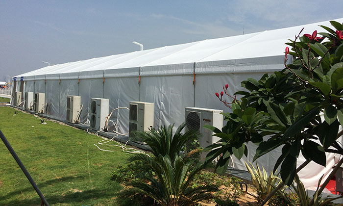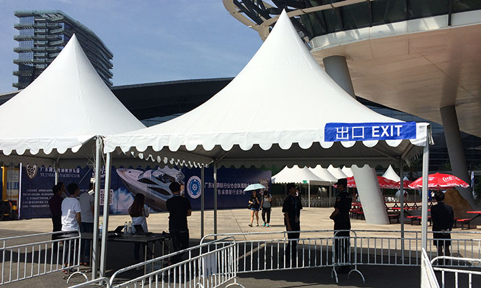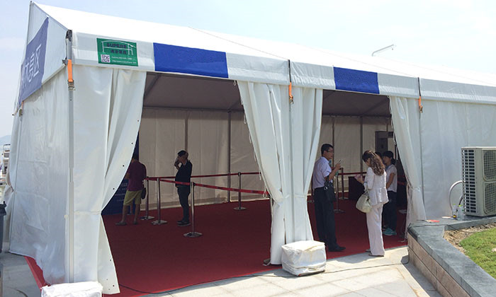 我司嚴格執(zhí)行ISO9001的質(zhì)量管理體系,確保不良產(chǎn)品的最小化及客戶滿意度的最大化。我們的的主要產(chǎn)品包括可移動的模塊化鋁合金支架篷房,有不同風格的篷房及裝飾可供選擇,篷房跨度從3米到60米。此外,還包括錐頂篷房和吊頂篷房,以及篷房配件,如照明燈具、地板、空調(diào)、桌椅及其它用于篷房內(nèi)部的家具。篷房可廣泛應用于大小型活動、婚慶、展會、體育、酒店、航空和工業(yè)等其它領(lǐng)域。篷房框架結(jié)構(gòu)為高強度鋁合金6061/T6型材,篷布為防水、阻燃的雙面PVC涂層聚酯纖維布,主體結(jié)構(gòu)風載荷不少于100Km/h。